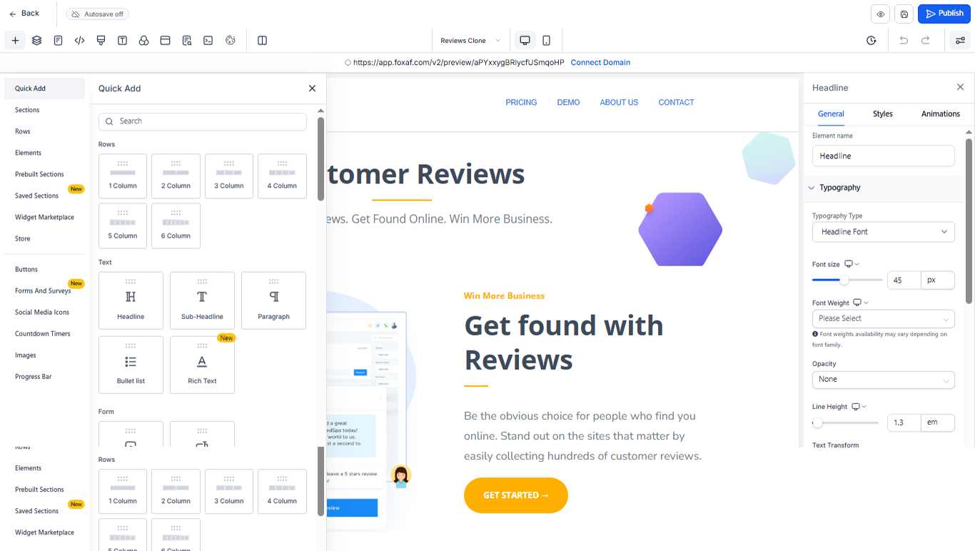 FOXAF includes a full featured page builder to create websites, funnels and landing pages. Use drag and drop blocks, A/B test pages and add one click upsells to boost your average order value. Leads captured here automatically flow into your CRM.