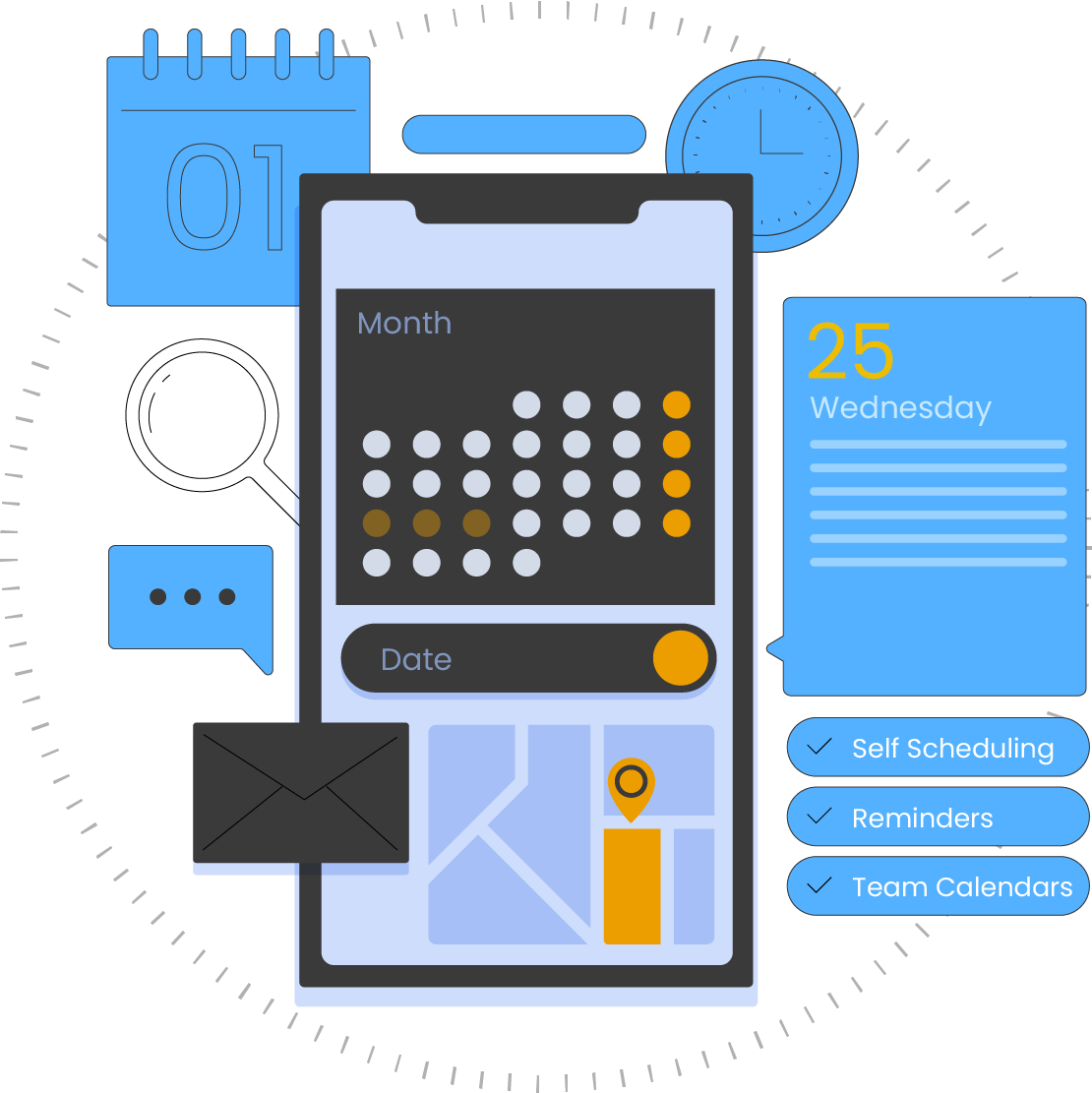 Let clients schedule meetings themselves with booking links and a built in calendar. Reduce no shows with automated SMS and email reminders.